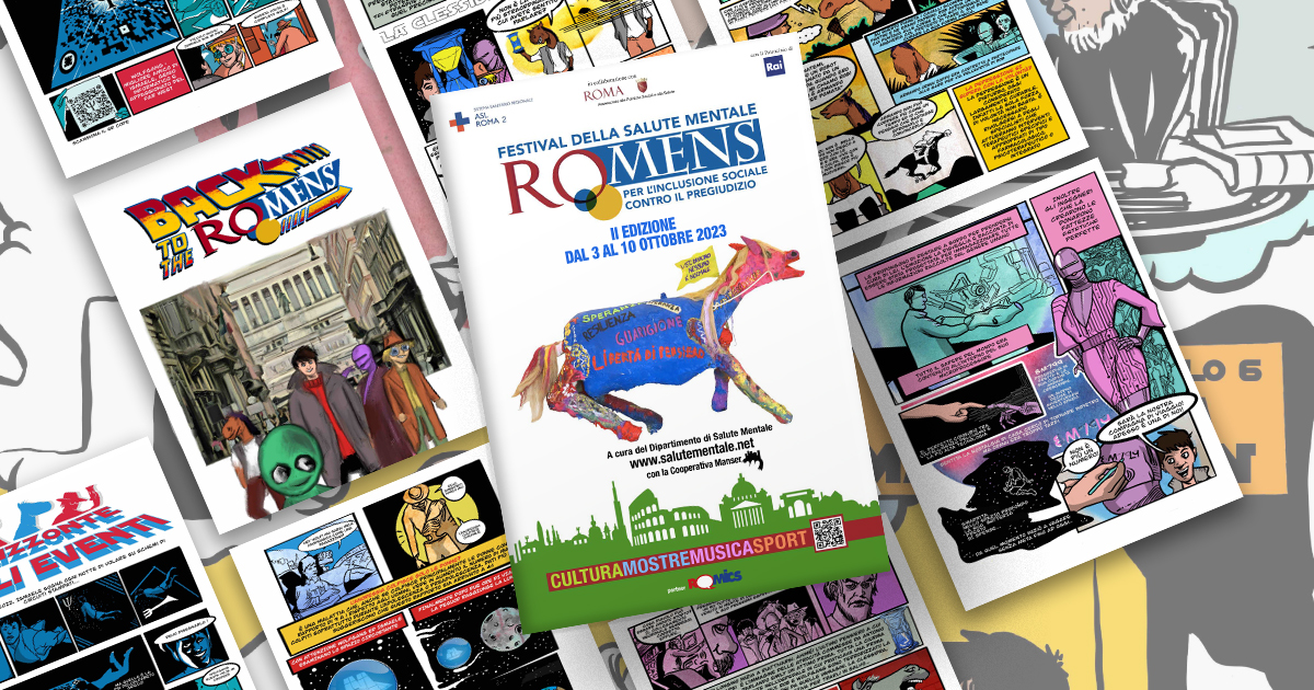 "Back to the Romens" (Edizioni del sole, 2022) is the comic realized by the Potential Space for young adults "Argolab2" of the Department of Mental Health of Asl Roma2 thought for "RO.MENS", the Festival of mental health for social inclusion against prejudice, the second edition in collaboration with the Department of Social Policies and Health of Rome Capital, with the patronage of RAI, with partner Romics, made with the Manser Cooperative. The aim of the authors of the comic is to disseminate correct information on mental health through languages specific to youth cultures. With quotes that recall the imaginary of pop-culture, fantastic stories set in space and time in the comics then become functional answer to the 11 "Faq" on mental health of the Istituto Superiore di Sanità. Starting from the presentation of the comic, the talk is dedicated to exploring good practices to understand how one can talk in a modern and effective way about mental health.